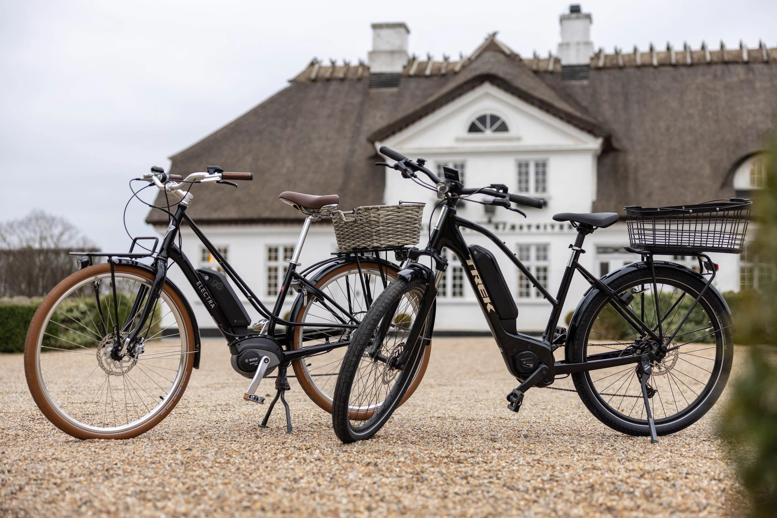 To cykler af mærket Electra, med lav på-/afstigning, LED-lygter forrest og bagest, kraftige bagagebærere udstyret med cykelkurv og punkteringsbeskyttede dæk. Cyklerne er udstyret med 5 indvendige gear beregnet til elcykler og deres Bosch centermotor med 4 trin, får dig nemt op ad bakker og accelererer sikkert og stabilt. De har en stor batterikapacitet, på op til 100 km.